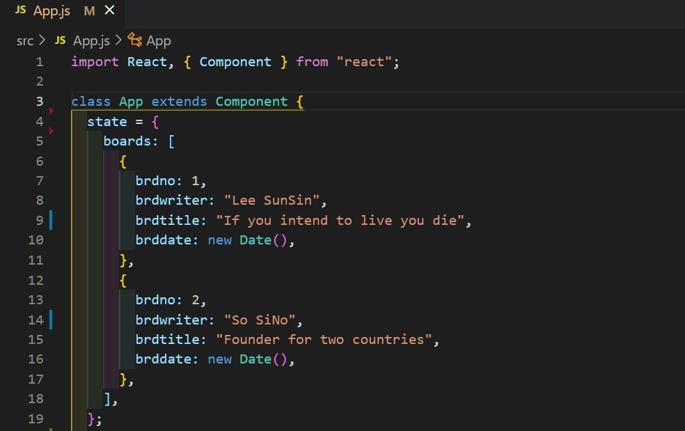 이때 App 컴포넌트에 있는 state를 사용하기 위해 this.state로 지정해준다.
