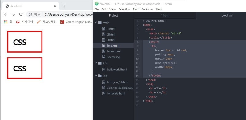 ※ display라는 속성을 이용하여 block을 inline으로, inline을 block으로 바꿀 수 있습니다