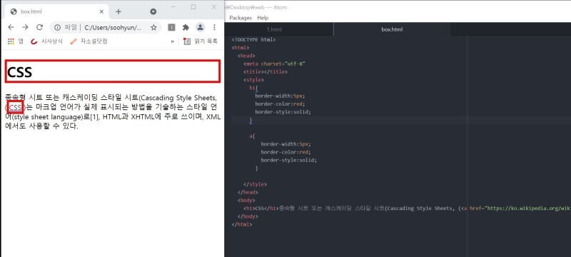 a 태그로 묶여 있는 부분은 inline element : 자기 자신의 콘텐츠 크기 만큼을 쓰는 태그